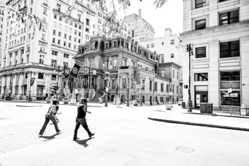 Walking around downtown Philadelphia, I was looking for a great photo opportunity. I wanted to catch someone walking by with the old, historic buildings in the background. Then, I saw two people quickly cross the street, and it made for a really…