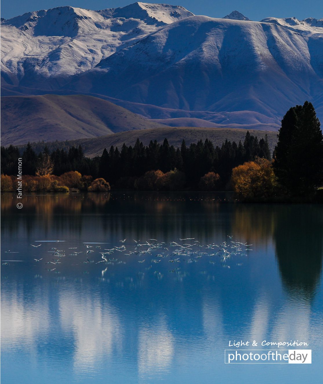 Lake Ruataniwha, located in Mackenzie Basin in New Zealand is a man made lake formed as a part of hydroelectric project. But as you are driving past this scene, not much here looks man made! In fact, this scene is so pretty, I was compelled to turn around and come back to take some pictures. The flock of birds timed it well for me! One day, I hope to take some pictures here at sunrise and sunset. This is pretty spectacular drive and it needs some dedicated time to it.