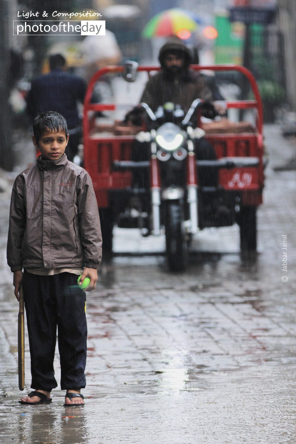 Cricket has been a favorite sports for Asians, and they play in all conditions. No mater if what the weather is or what place is it, they can play cricket. When it rains here, cricket is again favorite to enjoy rain. I photographed him while he was waiting for his friends to join him in little rain.