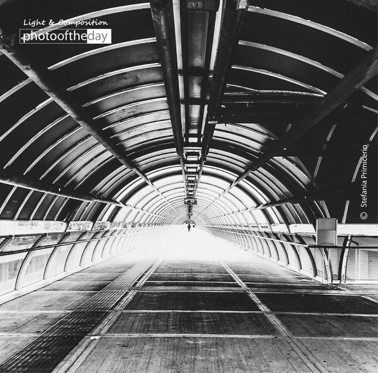 In an almost surreal tunnel in the Roman suburbs, a human figure walks in the distance. The light is as intense as the loneliness of the human being. It was a day of celebration and the solitude of this figure caught my attention. The black and white amplifies the drama of the photo.