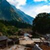 A Family’s Passage by the City Pillar