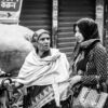 The photograph presents a striking study in texture and resilience, focusing on the faces and draped garments of two women. The monochrome palette emphasizes the intricate patterns woven into their shawls, creating a visual tapestry that speaks to a life lived within a complex social fabric. The composition is intimate, drawing the viewer into a close encounter with the subjects, their expressions hinting at both weariness and quiet dignity. The shallow depth of field isolates the women from a blurred background, further concentrating attention on their faces and the details of their attire. The lighting is soft yet revealing, highlighting the lines etched by time and experience, and the subtle nuances of their emotional states.