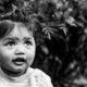 The photograph presents an intimate, waist-up portrait of a young child, positioned slightly off-center, drawing the viewer’s eye directly to their expressive face. Rendered in striking black and white, the composition masterfully isolates the subject against a softly blurred, darker background, creating a profound sense of depth and focus. This deliberate isolation elevates the child to a singular point of interest, emphasizing their presence and inherent dignity.