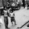The photograph presents a compelling study in contrasts, utilizing a stark monochrome palette to emphasize the textures and geometries of a densely populated urban environment. The composition is powerfully framed by converging walls, creating a sense of enclosure and directing the viewer’s eye along a narrow passageway. A figure draped in light-colored fabric moves purposefully through the space, their form partially obscured by shadow, while another individual is seated, seemingly lost in contemplation amidst the debris. The inclusion of a child’s back, receding into the frame, introduces a poignant element of vulnerability and the cyclical nature of life within this environment.