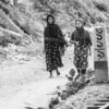 This striking monochrome composition captures a moment of stark resilience, focusing on two figures perched precariously atop a train carriage. The low-angle perspective emphasizes the height and vulnerability of the subjects, while the bold, diagonal lines of the train’s roof create a dynamic sense of motion that cuts across the frame. The high-contrast black and white treatment strips away the distractions of color, focusing the viewer’s attention on the textures of the fabric masks and the stoic, forward-looking gaze of the travelers, which evokes a profound sense of endurance and the quiet intensity of transit.