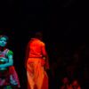 The composition centers on two young girls captured in a moment of genuine, uninhibited joy. Their clasped hands serve as the anchor of the frame, symbolizing a bond of companionship that transcends their immediate, austere surroundings. The soft, diffused lighting highlights the vibrant patterns of their traditional attire, creating a striking contrast against the muted, textured backdrop of the environment. This interplay of color and shadow emphasizes the subjects’ resilience and the quiet dignity found in their shared experience.