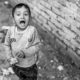 The photograph presents a striking portrait of a young woman, her face partially obscured by a delicately patterned shawl. The monochrome palette emphasizes the textures – the intricate floral design of the fabric, the smooth planes of her face, and the subtle shadows that define her features. The composition is tightly focused on her face and upper body, creating a sense of intimacy and drawing the viewer into her contemplative state. Her downward gaze, coupled with the soft, diffused lighting, evokes a feeling of quiet introspection and a subtle vulnerability. The shallow depth of field further isolates her, emphasizing her emotional presence within a blurred, undefined background.