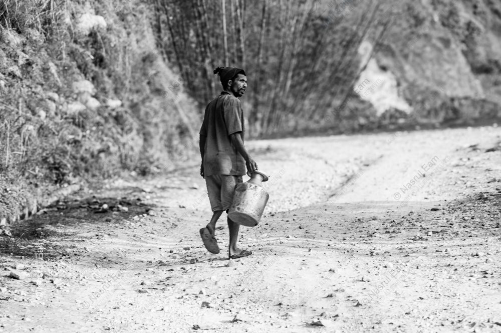 • The Carrier on the Sun-Bleached Road - Photography composition, visual storytelling, fine art photography, light study, photo technique, human resilience