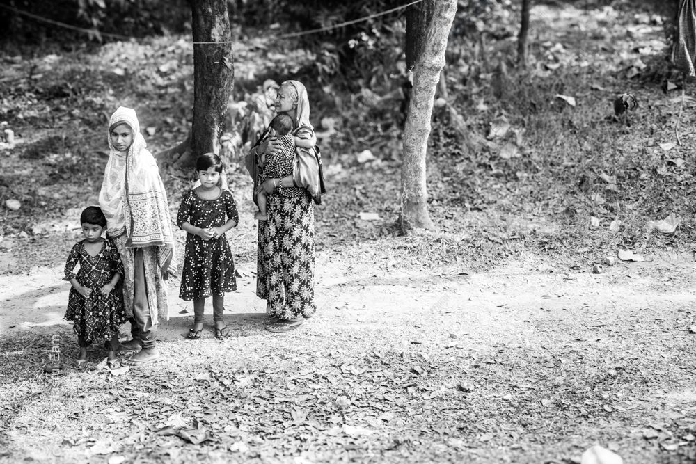 • A Mother and Children Standing in the Shade of Trees