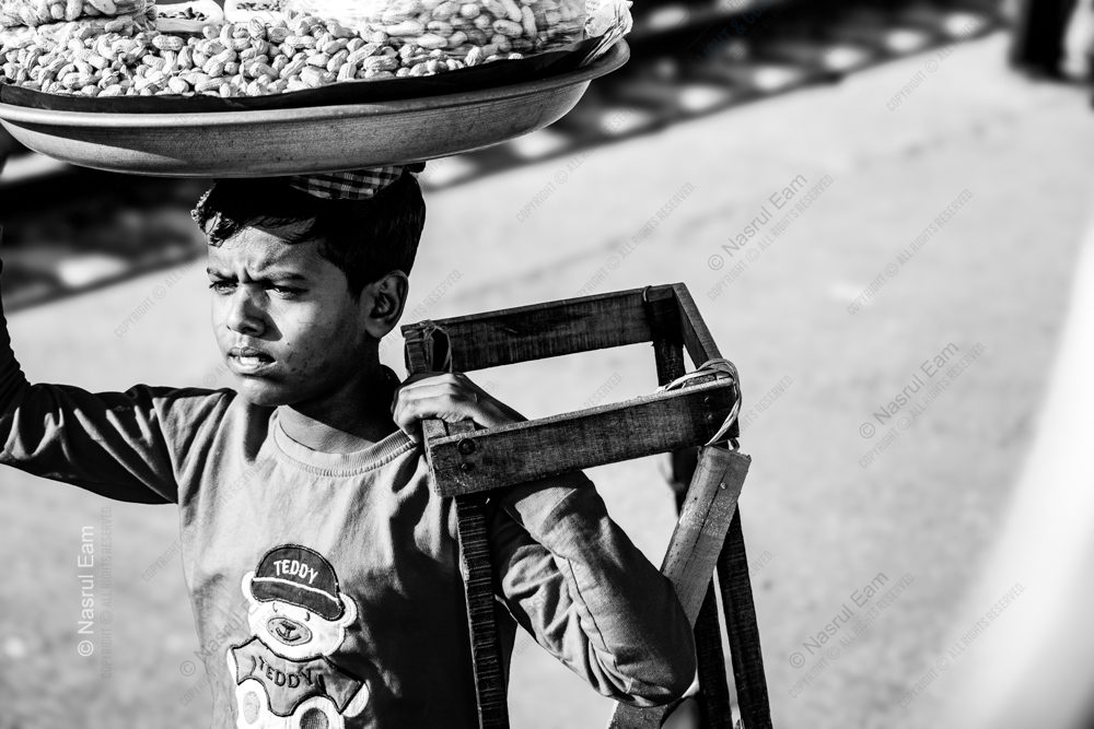 • The Young Vendor with Tray and Frame - Fine Art Photography Print, Limited Edition Photography, Black and White Photography, Documentary Photography,  Fine Art Prints